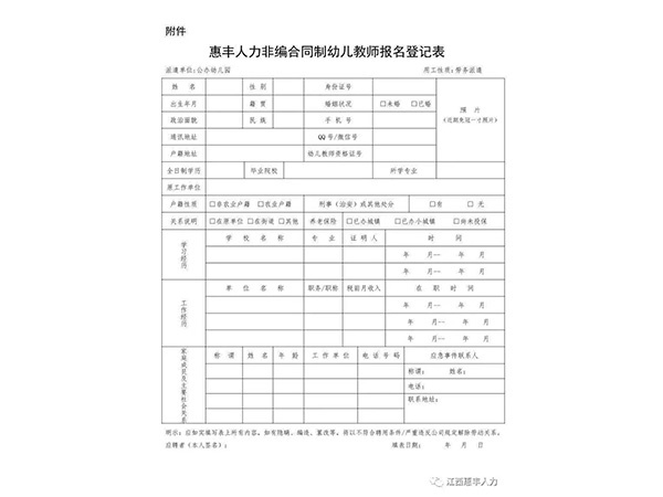 為滿足我市公辦幼兒園師資需求,我公司面向社會(huì)公開招聘一大批非事業(yè)編合同制幼兒教師,以勞務(wù)派遣的方式與用人單位進(jìn)行勞動(dòng)力資源開發(fā)合作。現(xiàn)將有關(guān)事項(xiàng)公告如下:一、招聘人數(shù)及崗位我市招聘非事業(yè)編合同制幼兒教師50名,具體崗位在選崗前公示。二、招聘方式通過(guò)第三方勞務(wù)公...